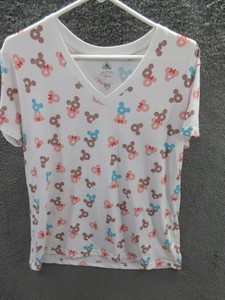 Disney Shirt Donut Ohren Snacks Damen Größe L weiß V-Ausschnitt