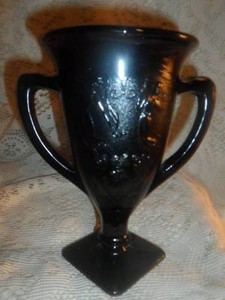 Vintage RIESIGE elegante Bernstein geätzte geschliffene Kunstglas Traube & Blatt Kaminsims Vase mit Fuß CHF 28,94