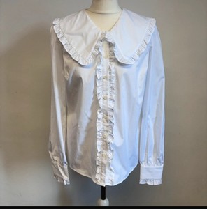 Luella Broderie Anglaise Bluse passt Ch37" weiß Rüschen Langarm Boho Baumwolle