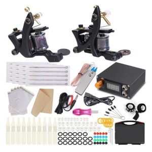 2 Tattoo Maschine Guns Tattoomaschinen + Nadeln Netzgerät Zubehör Set
