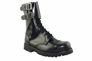 Stahl Boden Schwarz Leder Kampfstiefel 10 Öse 2 Riemen Schnalle St129Z178 Rock