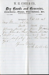 Vintage 1878 W.H. Cobb & Co. Hand Signed Letterhead - Springfield Vermont