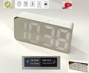 Digital Wecker Tischuhr Uhr Alarmwecker Snooze Spiegel Uhr DS-3622X Weiß- Weiß