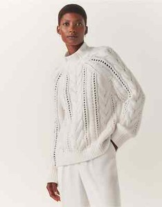 The White Company Alpaka-Pullover mit Zopfmuster und Trichterausschnitt, grau, Small, UVP 129 £ CHF 74,54
