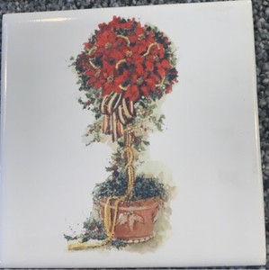 *CLOSEOUT* 6 pc Poinsettia Tree Ceramic Tile *Craft project*