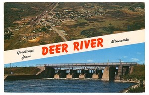 Gruß Postkarte Deer River Minnesota Luftaufnahme Lake Winnibigoshish Dam