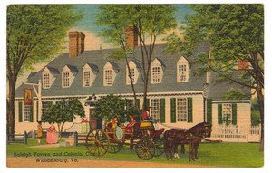 Postkarte Original Kolonial Williamsburg Raleigh Taverne Kolonialkutsche Virginia