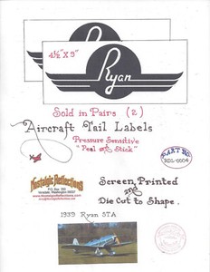 Ryan Aircraft PT-22 & PT-20 ST-A Tail Labels 1939 - 1940's