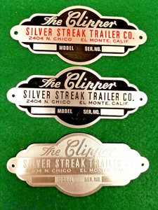 Silver Streak Clipper or Sabre Vintage Trailer Data Plate 1940s - 50s CHOICE