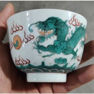 3,1 Zoll China Qing rot grün Farbe Porzellan Guan Ofen glückverheißendes Tier Drache Tasse