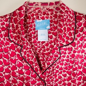 💖 NICK & NORA Pyjama Set rot Herz 100% Seide Langarm Schlafanzug Hose M / Shirt L