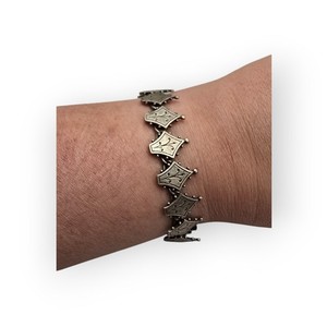 Mid Century 50er Jahre Silber Schild Gliederarmband geätzte Platten Vintage Schmuck