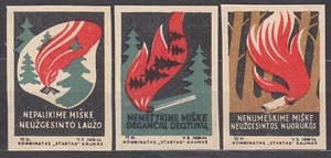 SU LTSR 1956 Matchbox Label - #055+056 - "Liepsna" (in Lithuanian - means FLAME)