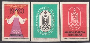 SU LTSR 1975 Matchbox Label #01-3 set, Moscow invites the Olympics.