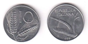 1999 Italia Lire 10 Spighe Fior di Conio Unc