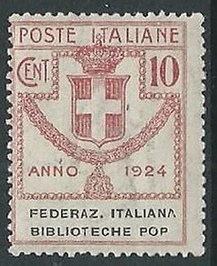 1924 REGNO PARASTATALI BIBLIOTECHE POP. 10 CENT MNH ** - RE7-4