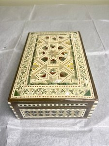 Vintage Ägyptische Intarsien Perlmutt Holz Schmuck Schmuckschatulle