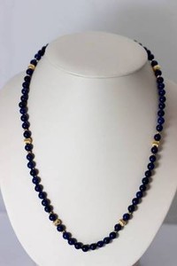 Schöne Lapislazuli & Gold Perlen 14K Gelbgold Halskette 21" - 4330