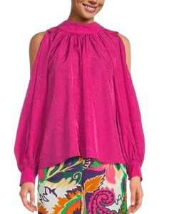 BA&SH Women's Size Medium Pink Fuchsia Stefy Floral Cold Shoulder Top MSRP $320
