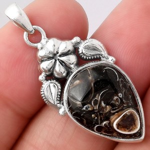 Merlinit Dendrit Opal - Türkei 925 Sterling Silber Anhänger Schmuck P-1205