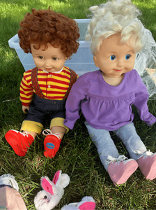 VINTAGE 1986 PLAYMATES CRICKET UND KORKBÄNDER UND ORIGINAL KLEIDUNG PUPPEN