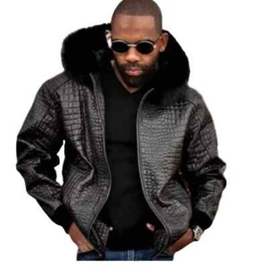 Neu Herren Echt Kroko Leder Bomberjacke mit Kapuze Kunstfell Neu mit Etikett