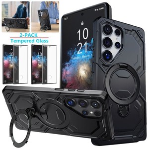 For Samsung Galaxy S22 Ultra Rugged Magnetic Hard Case Ring Cover Tempered Glass