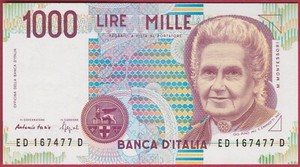 R* ITALIEN 1000 LIRE 1990 P-114a UNC DETAILS #6622
