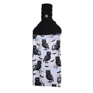 Gehäkeltes Halloween Eule und Fledermäuse hängendes Küchentuch Handarbeit Küchendeko