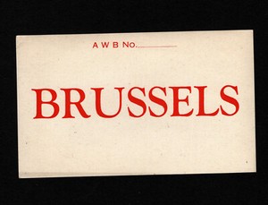 OPC Vintage Transocean Air Lines 5" Brussels Transhipment Label MNH