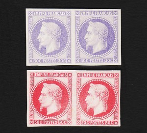 1867 Frankreich 30c Napoleon Imperf Paare Farbproof Essay MH NG