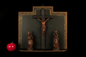 Étonnant diorama ancien, art populaire religieux vers 1880. / Christ Croix