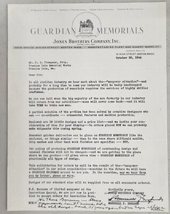 1946 Letter Boston Massachusetts The Jones Brothers Company Guardian Memorials