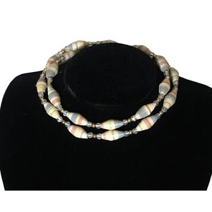 80s Vintage Lacquered Paper Swirl Beaded Necklace, Blue and Mauve