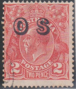 (F242-144) 1932-3 Australia 2d red KGV over printed OS (ES)