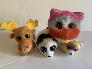 TY Miniature Plushies Lot Of 3 + Cat Head. Great For Gifting * Adorable *