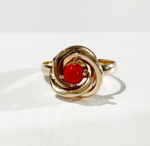 Vintage Ring 18 Karat Gold und Koralle, Korallenwirbelring