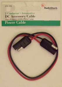 RadioShack 1 Foot Automotive DC Accessory Cable ~ Polarized Quick-Disconnects