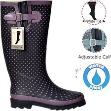 DAMEN EXTRA WEITES WADENBEIN SCHWARZ LACK GUMMISTIEFEL WASSERDICHT STIEFEL 3-9