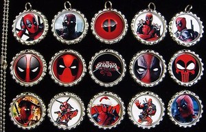 15 Deadpool Silber Flache Flaschenverschluss Halsketten Set 1