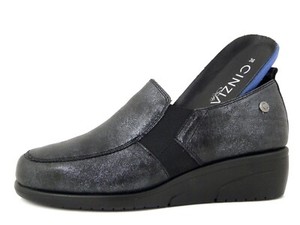 Mocassini Donna 36 Pelle Laminata Zeppa Bassa Plantare Estraibile CINZIA SOFT