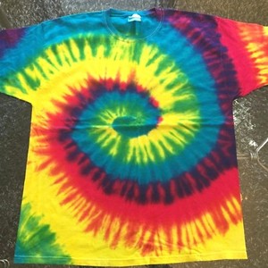 Neu Jugend M 10-12 Unisex Batik T-Shirt Reaktiv Regenbogen Atom Spirale Hippie