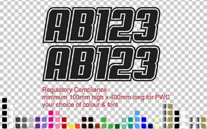 Boat Rego Stickers Registration Decal PWC Jet Ski 400 x 100mm 10cm high