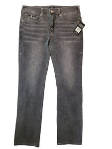 True Religion Ricky Relaxed Straight graue Herrenjeans 34 x 34 neu mit Etikett ~ Stil 107804