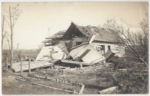 1912 Broken Bow, Nebraska - ECHTFOTO Wohnhaus von Tornado zerstört
