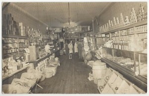 1910 Broken Bow, Nebraska - ECHTFOTO Gemischtwarenladen Innenraum, alte Postkarte