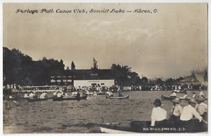 1908 Akron, Ohio - ECHTFOTO Kanu-Club am Gipfelsee - alte Postkarte