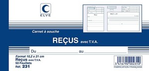 ELVE Carnet à souche "Reçu avec TVA", 96 x 210 mm, impression recto bleu