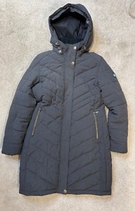 POLARINO Damen Mantel grau Kapuze wattiert Reißverschluss Jacke UK Größe 12 Top Zustand