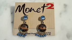 Goldfarbene blau & hellbraune Perlen Ohrringe von Monet 2